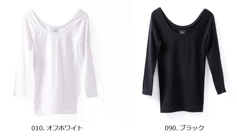 良く伸び、よくフィットする丸胴生地は、重ね着のインナーとしてアウターにあたりができにくく、着ぶくれしにくく、すっきりシルエットを実現!大きく開いた襟ぐりと体の動きにフィットして、アウターの襟ぐりのカタチに合わせて調整でき、チラ見えの不安を軽減します。