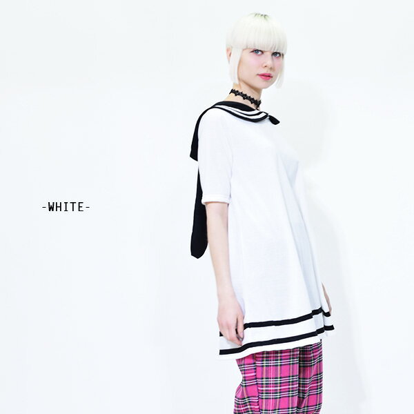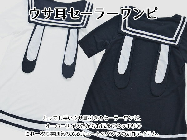 【うさ耳×セーラートップス】 カワイイの代名詞「うさ耳」が病みかわ「セーラー」とMIX! ワンピース風のロング丈がとってもキュート◎ 上からカーデやブルゾンを羽織ってスクールコーデもおすすめ♪