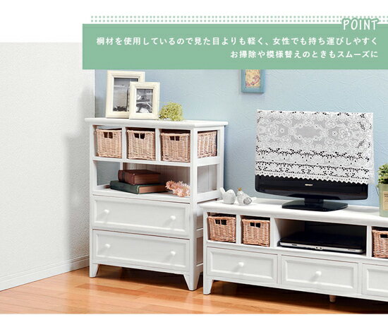 リビングチェスト ホワイト 【送料無料】【チェスト アンティークホワイト MCH-5216AW】 カゴ バスケット収納 オシャレなタンス かわいいタンス