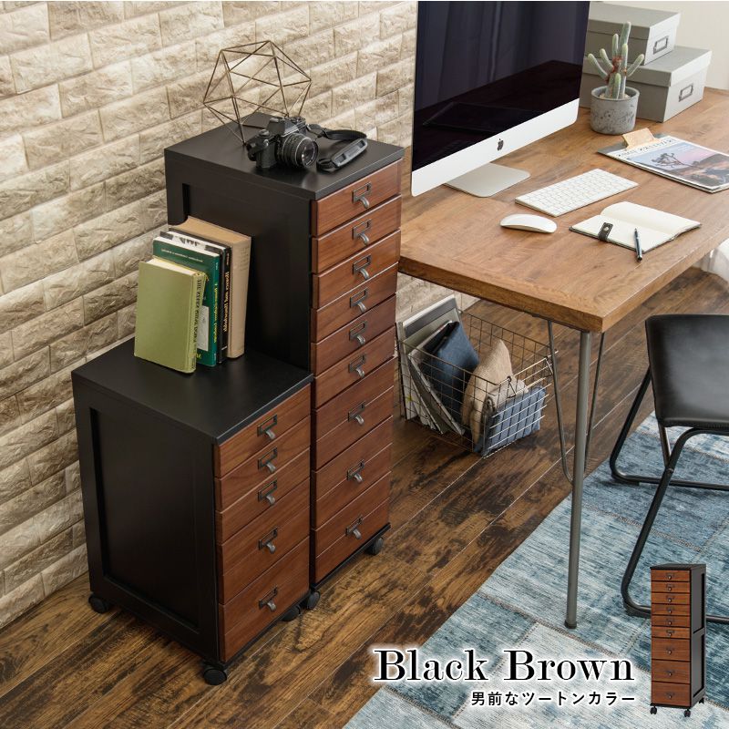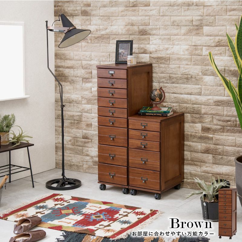 チェスト 9段 A4 ファイル 収納 大容量 引き出し 木目調 アンティーク キャスター ストッパー付き ネームプレート キッチン(代引不可)【送料無料】
